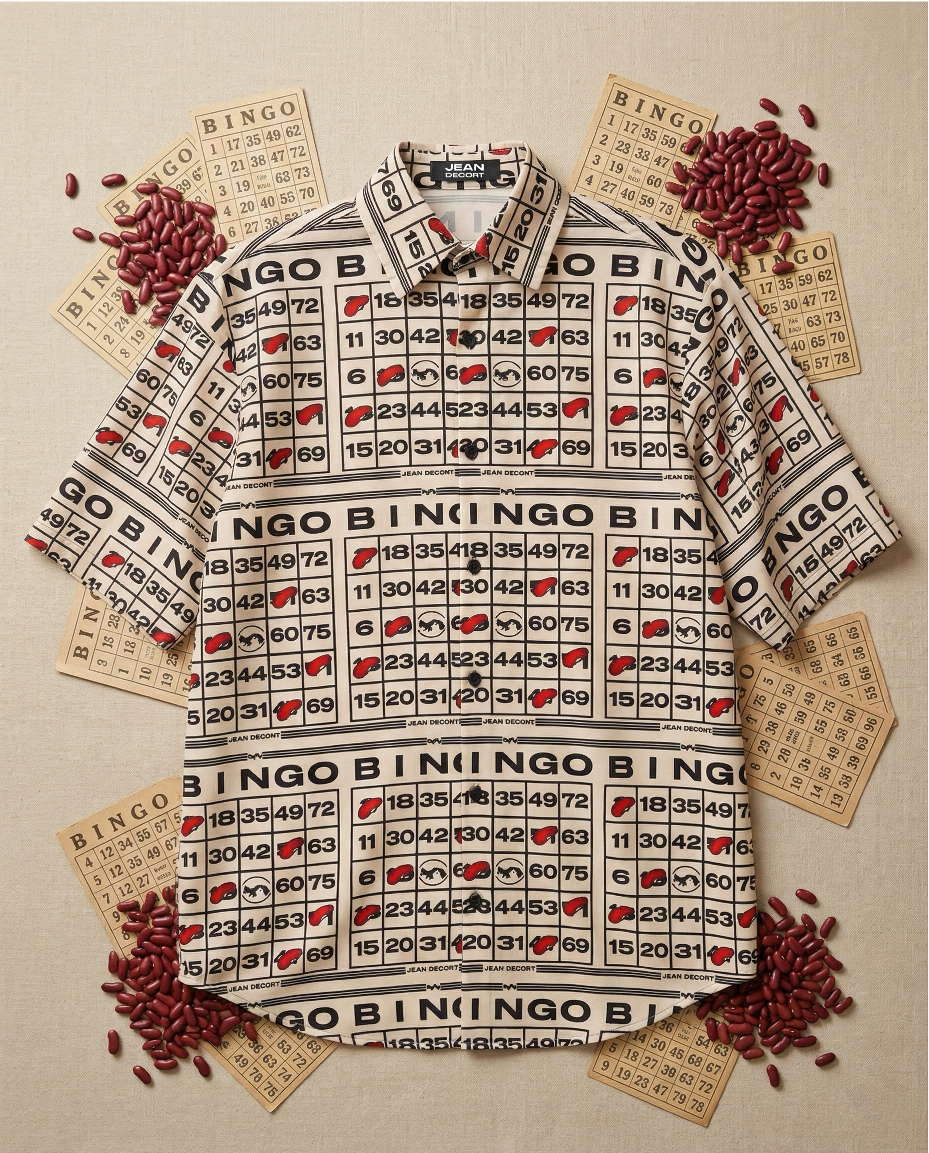 Esta camisa está inspirada en el famoso juego de bingo con los clásicos porotos para apuntar los números.