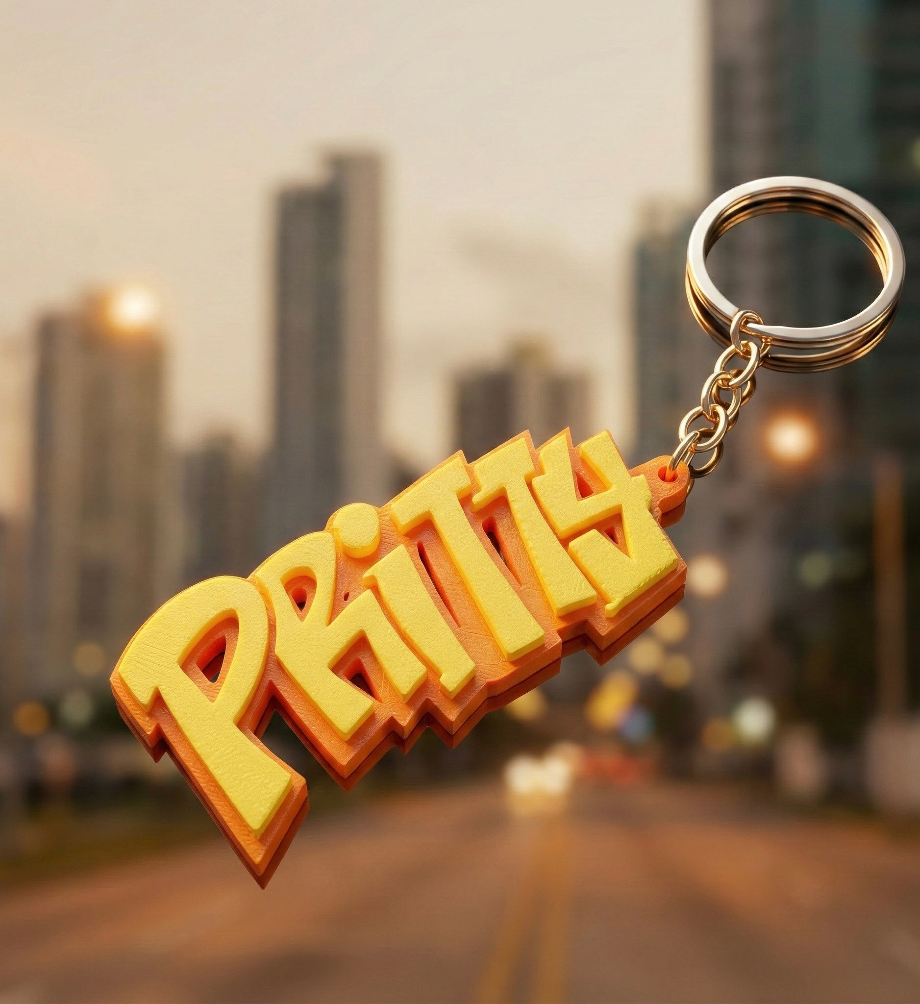 Este Llavero de alta calidad es ideal para los amantes de la cultura panameña. Está impreso en 3D con material eco amigable y cuenta con un diseño inspirado en la palabra PRITTY, parte de las PANAMEÑADAS de Jean Decort.