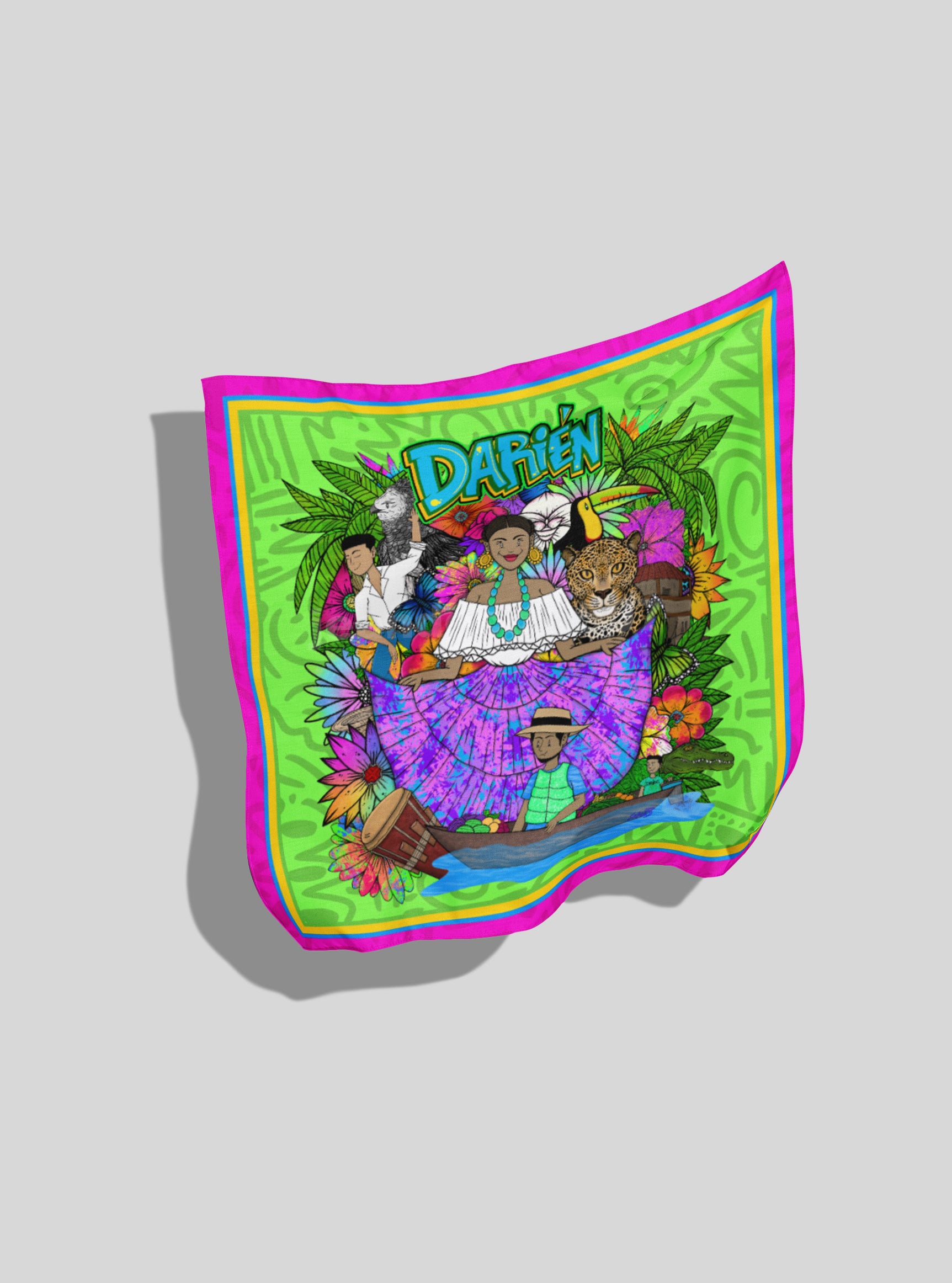 Descubre la esencia del Darién en esta elegante pañoleta que celebra la riqueza cultural y natural de una de las provincias más emblemáticas de Panamá. Cada detalle refleja la biodiversidad, tradiciones ancestrales y belleza paisajística que caracterizan esta región única. Perfecta para quienes desean llevar consigo un pedazo de la identidad panameña con estilo y distinción. Una pieza versátil que combina arte, historia y sofisticación en un accesorio atemporal.