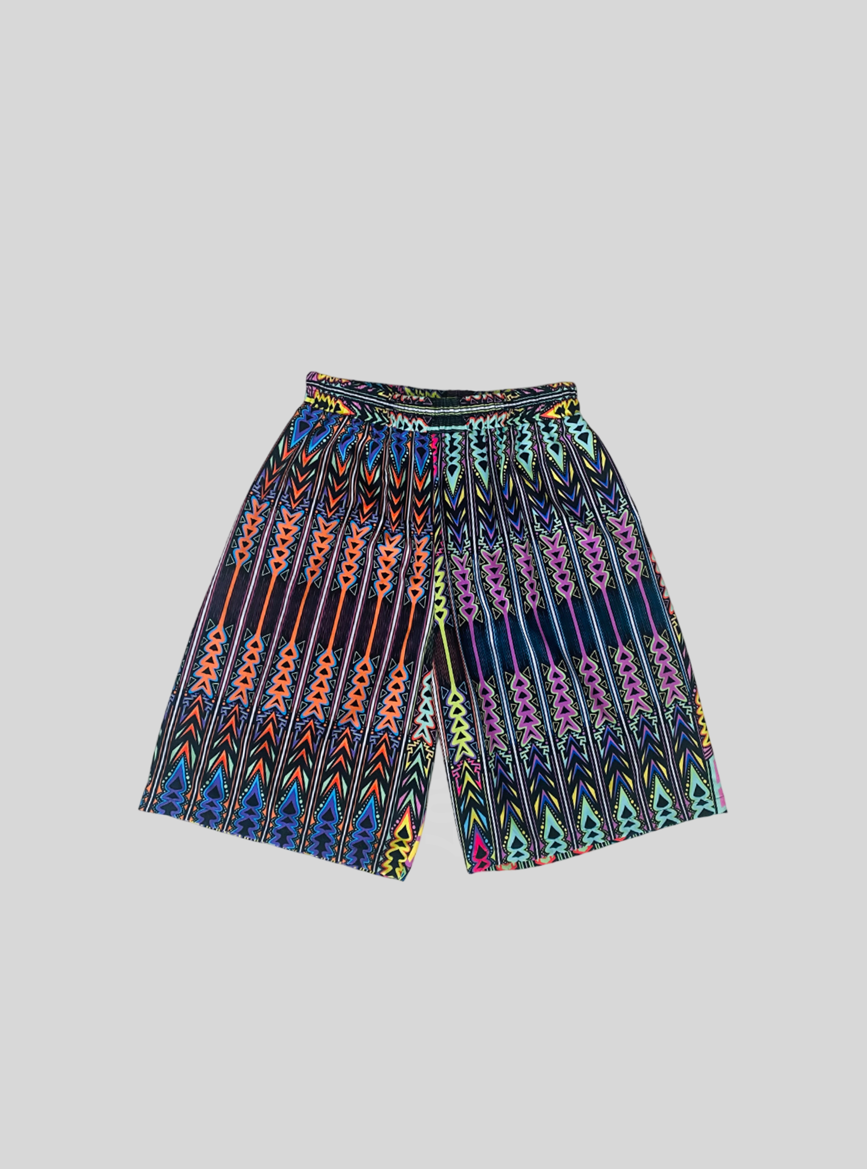 Este pantalón bermuda está inspirado en las emblemáticas líneas del "diablo rojo", el colorido y tradicional bus de Panamá. Su diseño refleja la cultura local, combinando estilo y comodidad para el día a día. Ideal para quienes buscan una prenda única que rinda homenaje a una iconografía panameña, manteniendo una silueta fresca y versátil.
